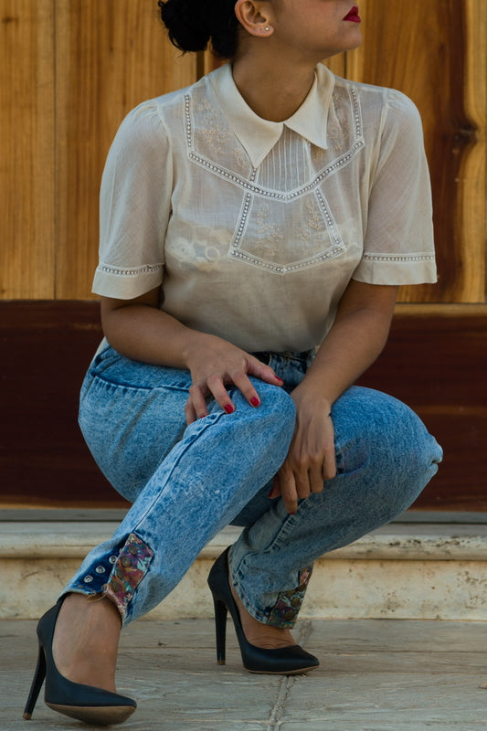 Vintage 80's Blouse with Lantern Sleeve (S/M)