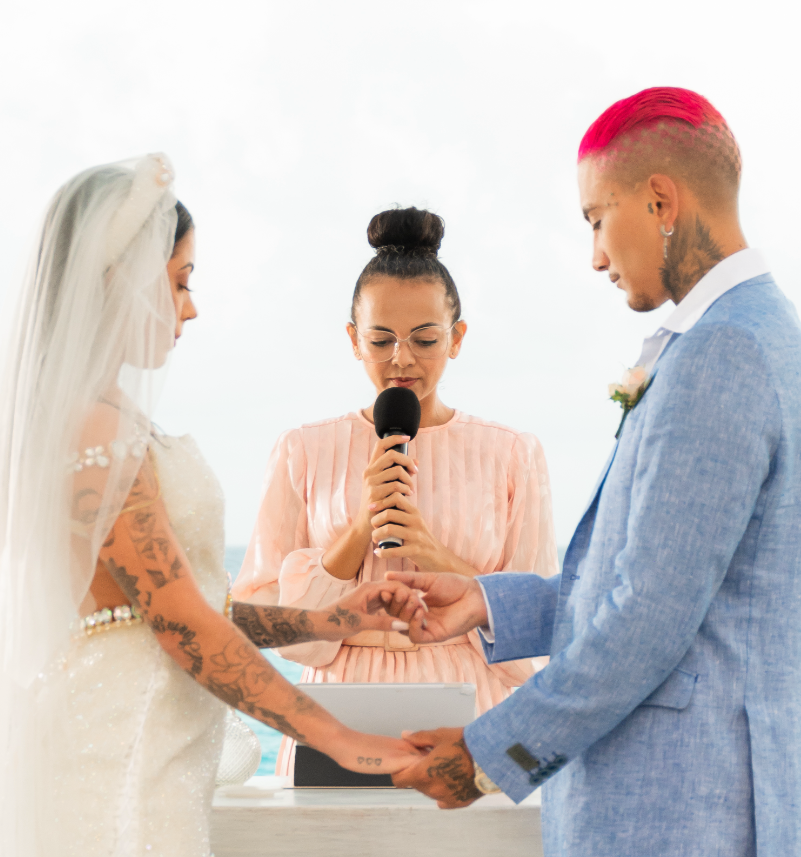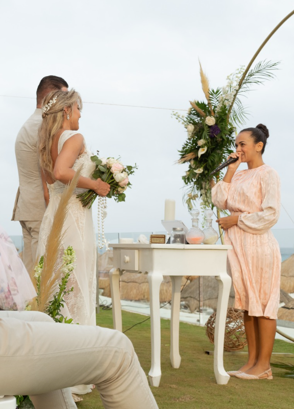 a passionate polyglot, writer and wedding officiant, personalizing ceremonies in Cancun and the Riviera Maya since 2018. I believe your wedding should be an authentic and personal expression of the connection between the two of you, rather than following traditional norms and hierarchies.