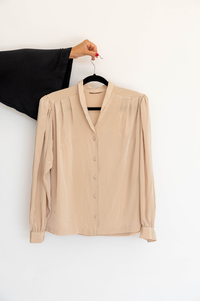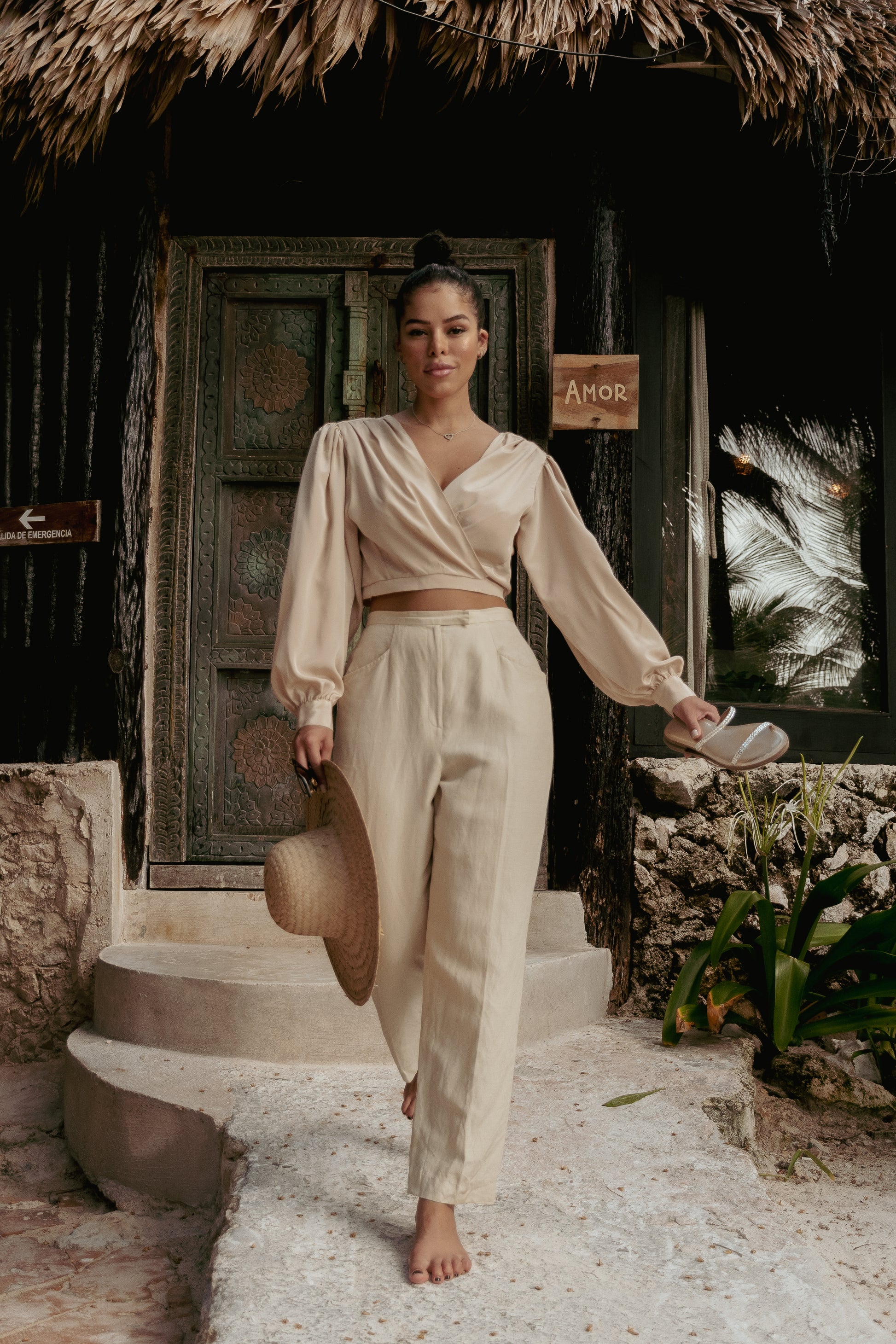 Made from a 1980s blouse, this upcycled cropped silhouette top guarantees to make a statement. It`s romantic style teamed with classic linen trousers will be perfect for the ultimate day date look. Team with block heels and a killer clutch and get ready to dance until dawn!