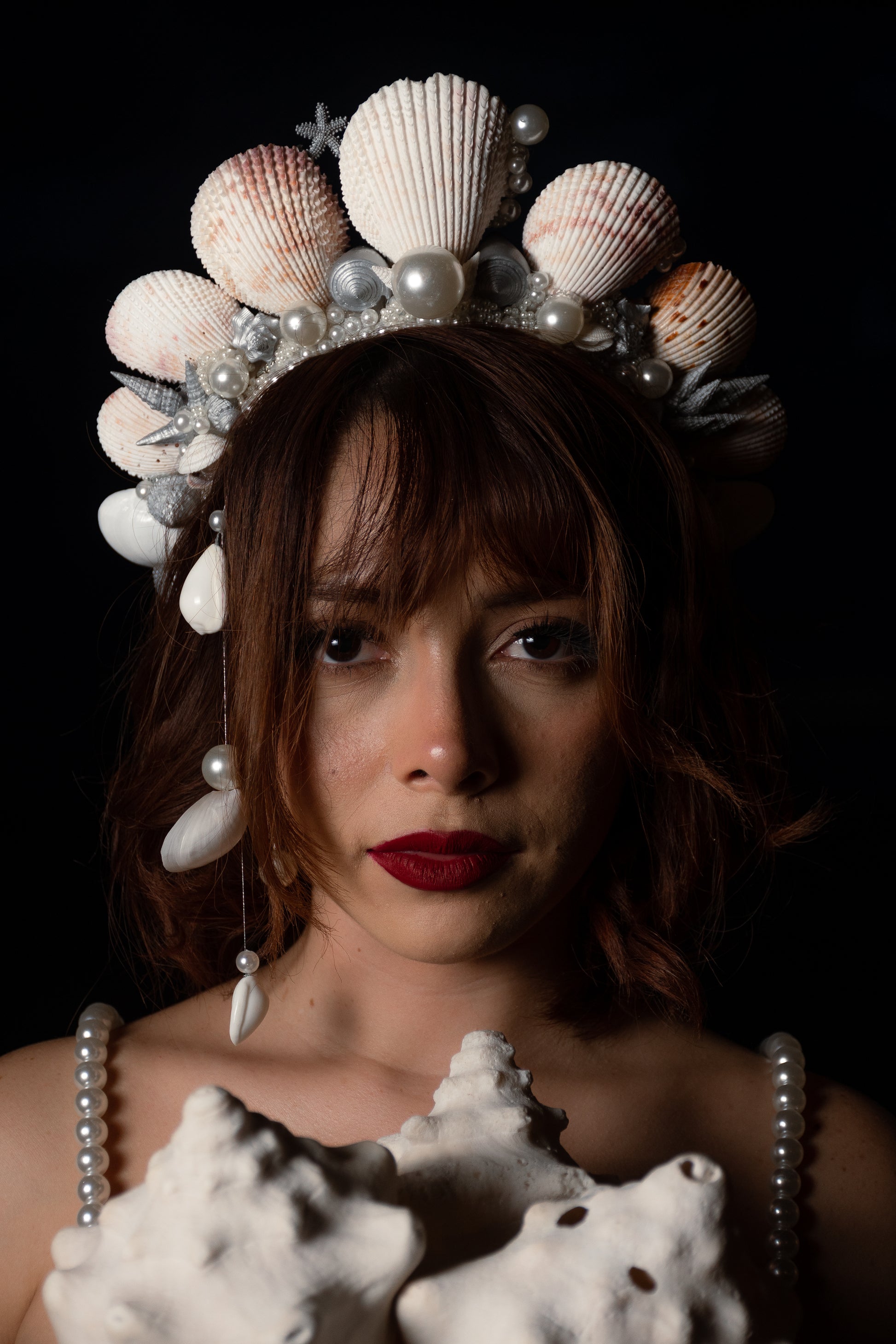 Beautiful bridal tiara, i ntricatly hand made using the finest materials, a lovely mix of small and large ivory faux pearls & seashells.