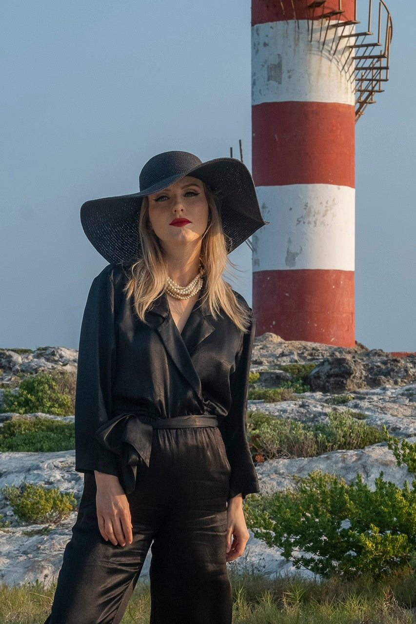 Black satin jumpsuit from the 80s, it's perfect for those home-office days where you want to feel comfortable working with your laptop in bed and ready to take a zoom call with the right to an open front camera and everything! Crossed top with 2 buttons, one inside and one outside that when buttoned makes the left pocket, the waist is elastic and comes with a ribbon of the same fabric to mark the waist.